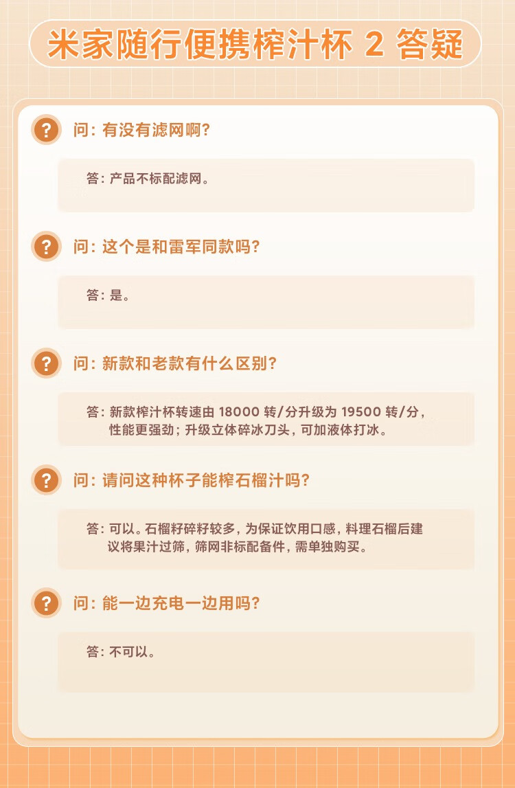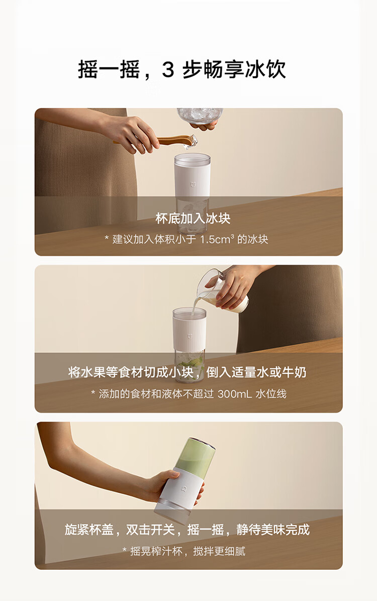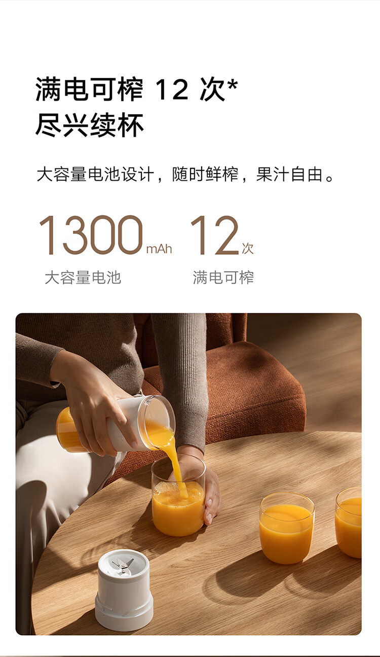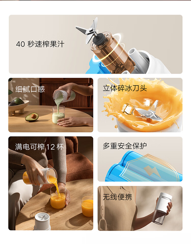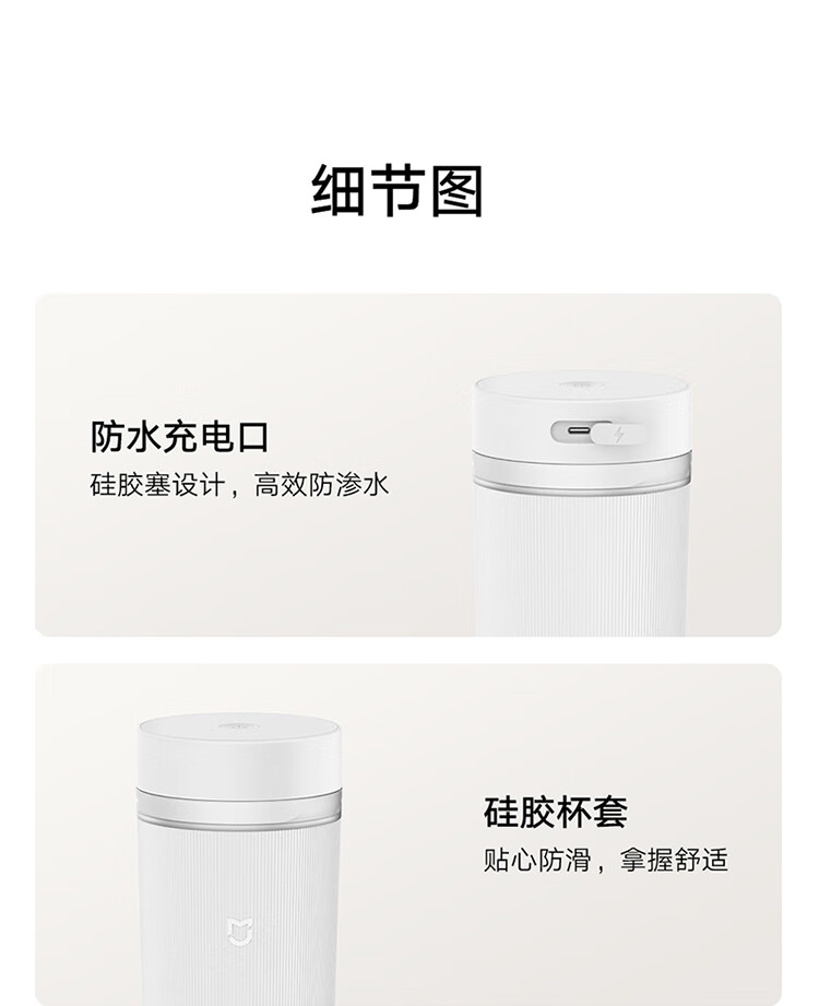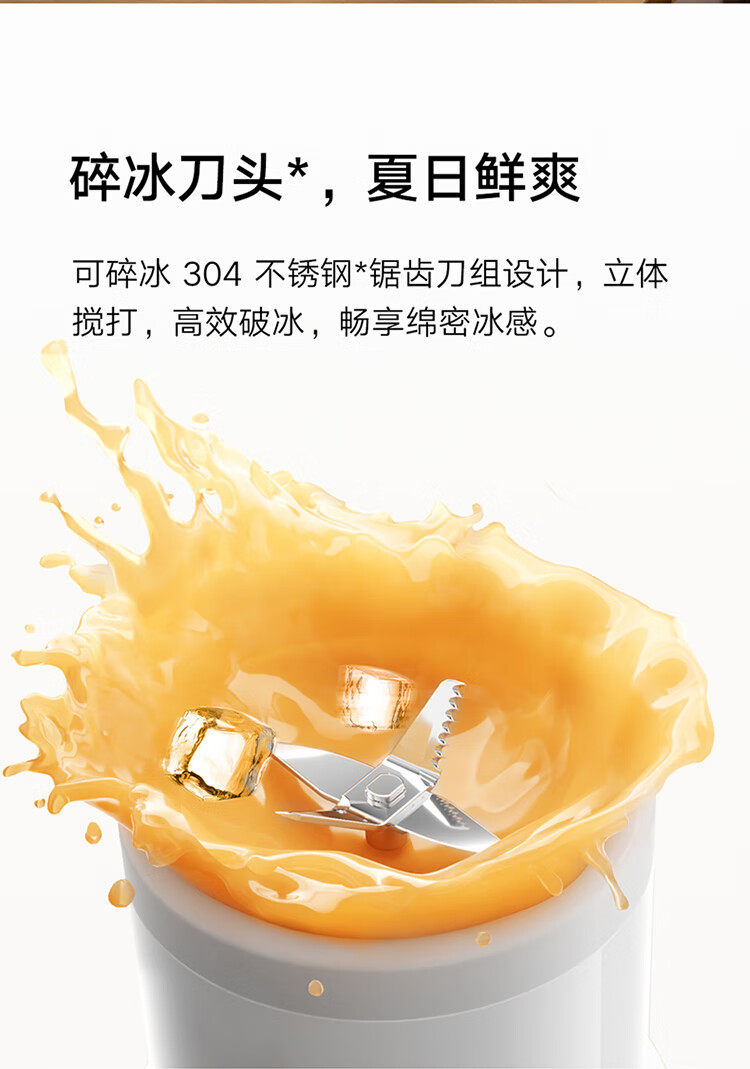 米家小米榨汁杯2 电动榨汁机果汁机搅拌杯儿童婴儿辅食机小型便携家用多功能自动清洗 304不锈钢可碎冰