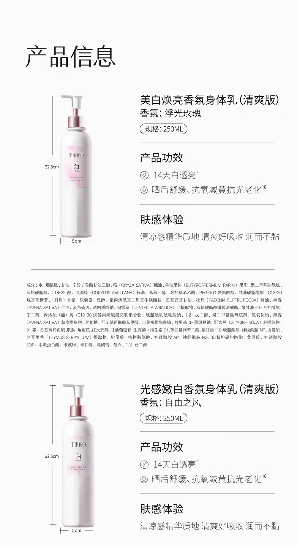 半亩花田热巴同款美白身体乳男女士烟酰胺焕亮轻薄保湿晒后褪红润肤乳液