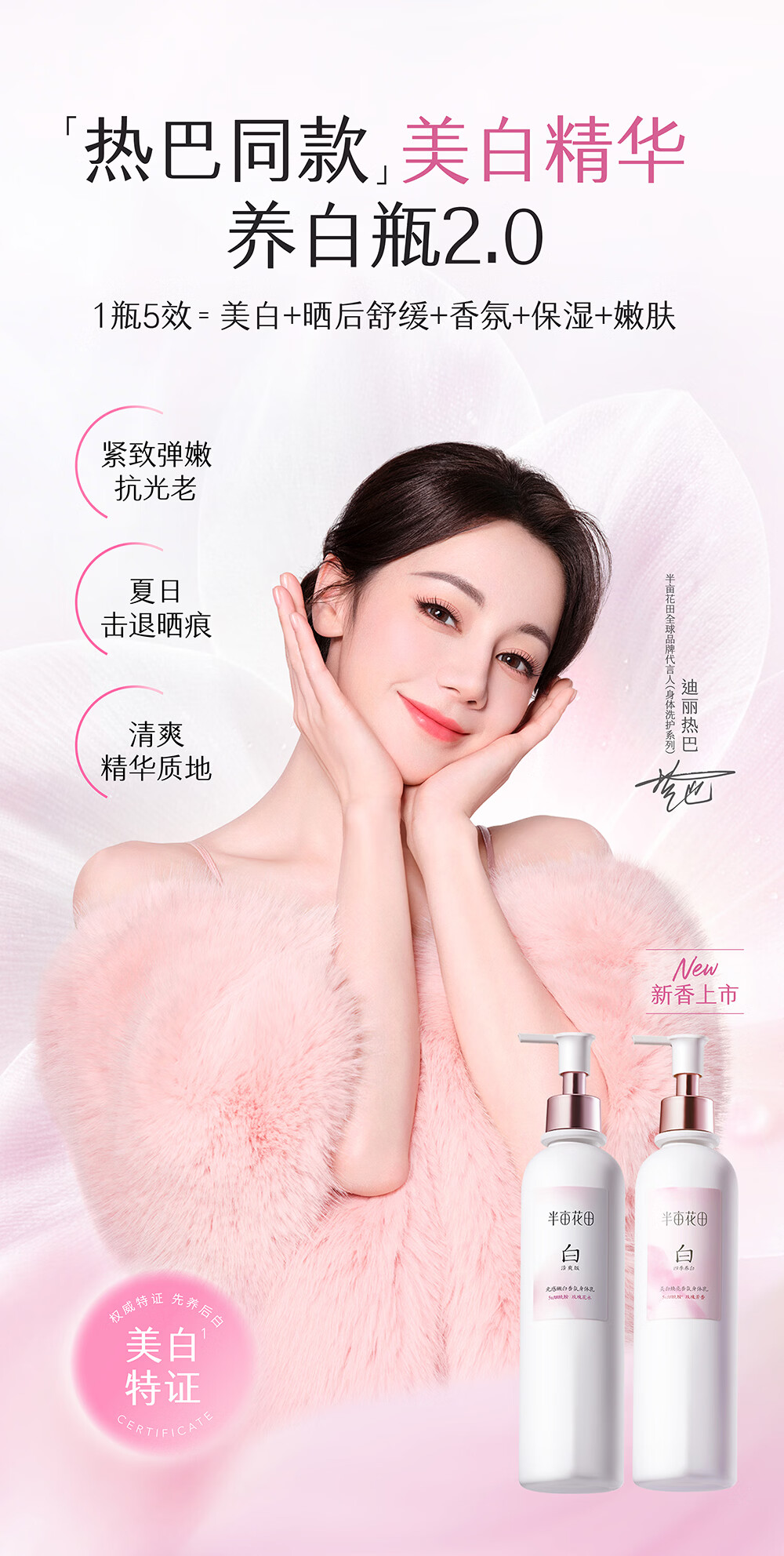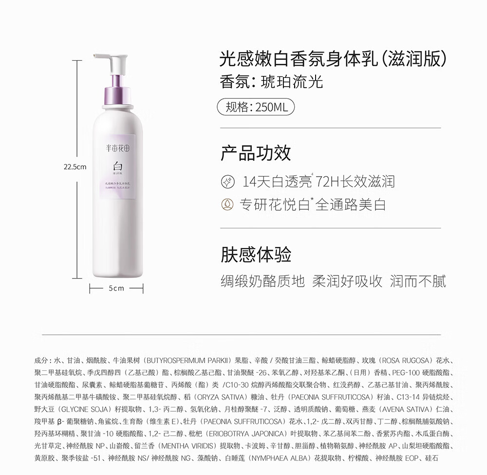 半亩花田【旅行装】热巴同款美白身体乳提亮滋润保湿持久留香身体乳30ml