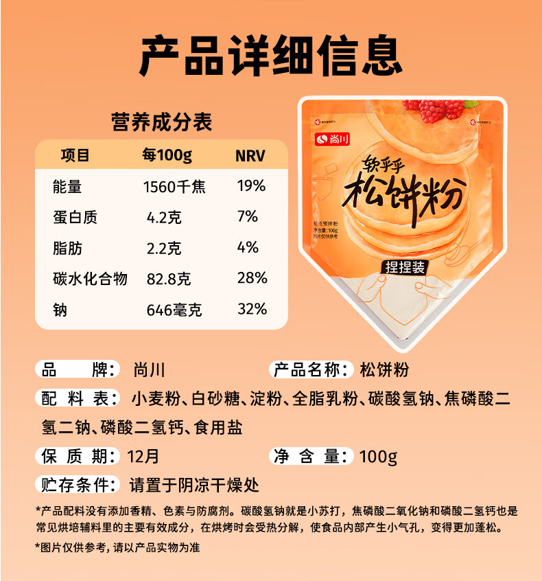 尚川松饼粉捏捏装100g*6袋 早餐预拌粉铜锣烧华夫饼粉烘焙原料
