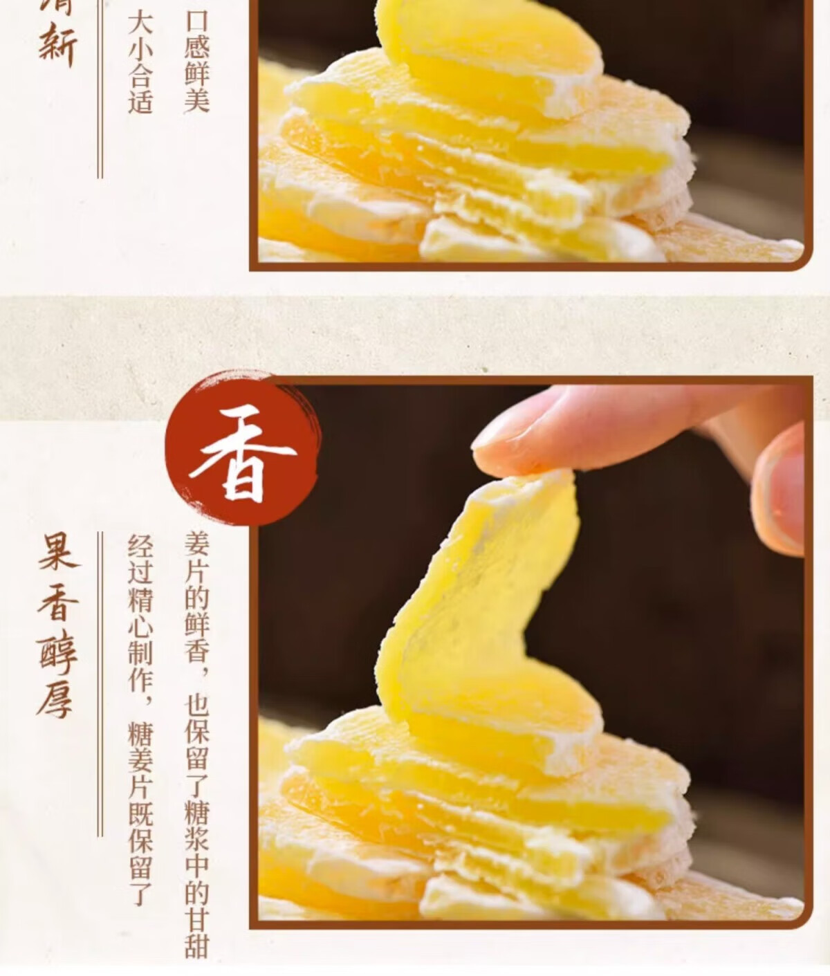 憨豆熊糖姜片405g 即食糖姜片生姜片泡茶自制冰糖老姜片怀旧休闲小零食