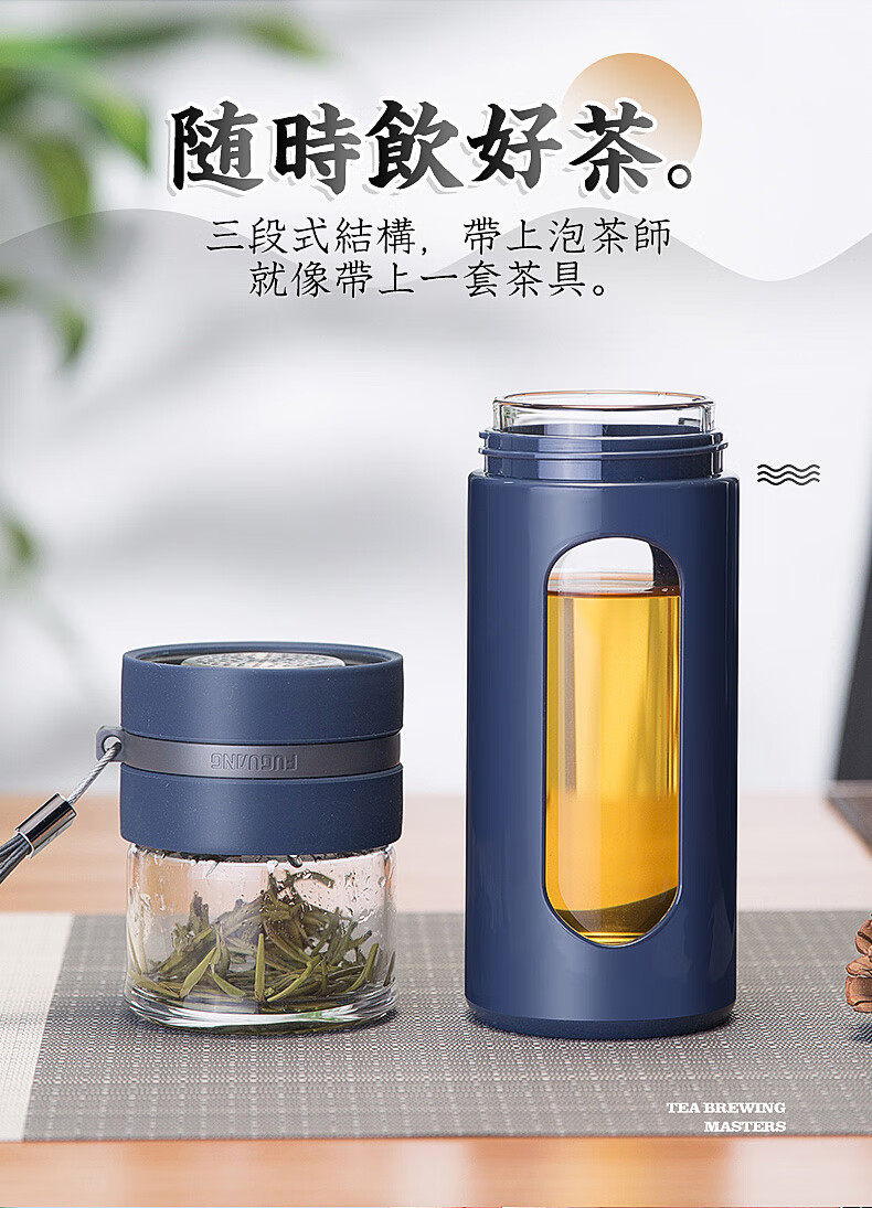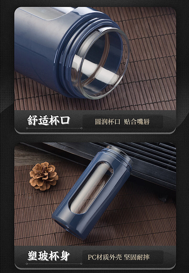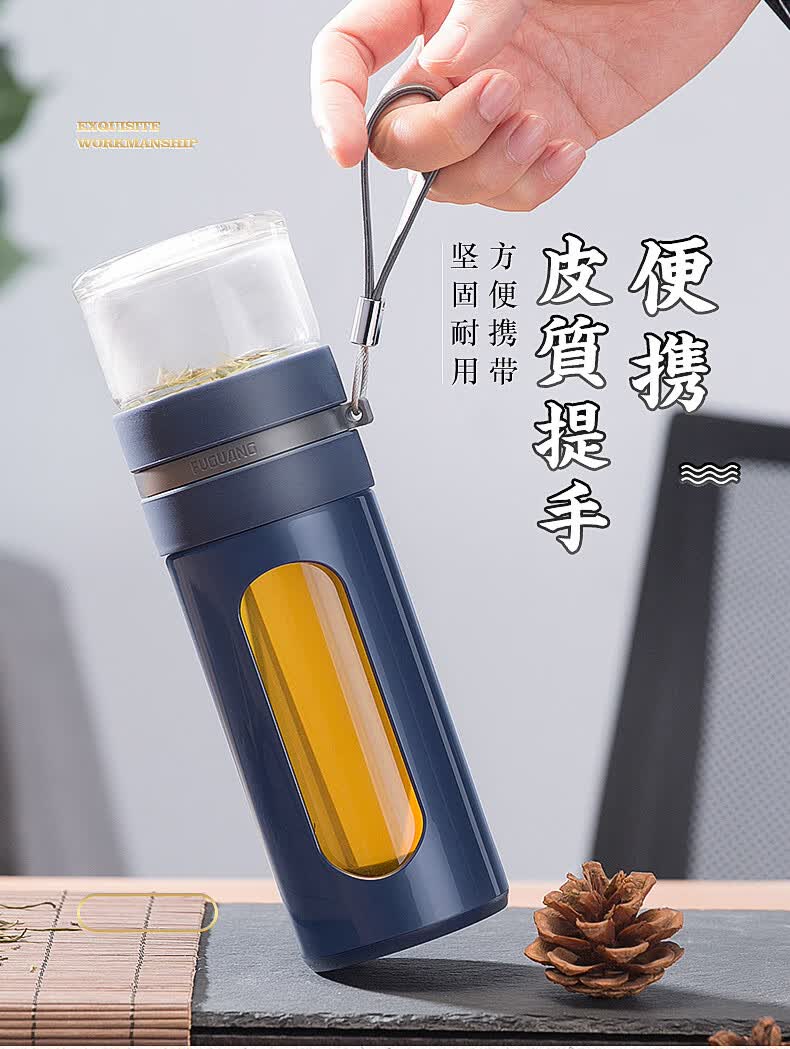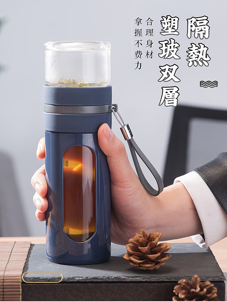 富光玻璃杯 高硼硅泡茶杯子 茶水分离杯 商务办公便携塑玻水杯男女士