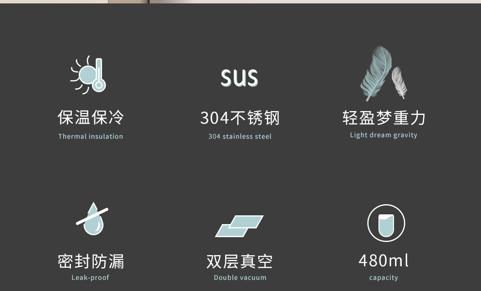 虎牌(TIGER)保温保冷杯一键开启男女不锈钢水杯子MMJ-A48C-KA 480ML