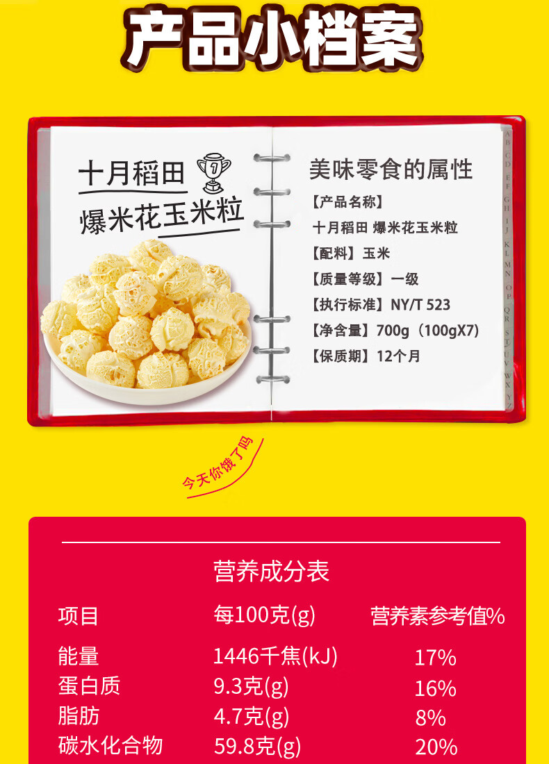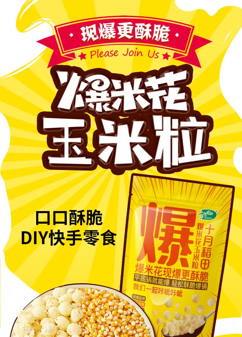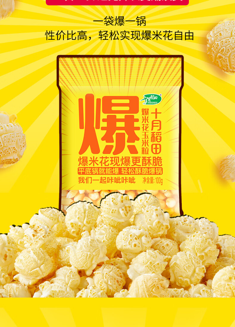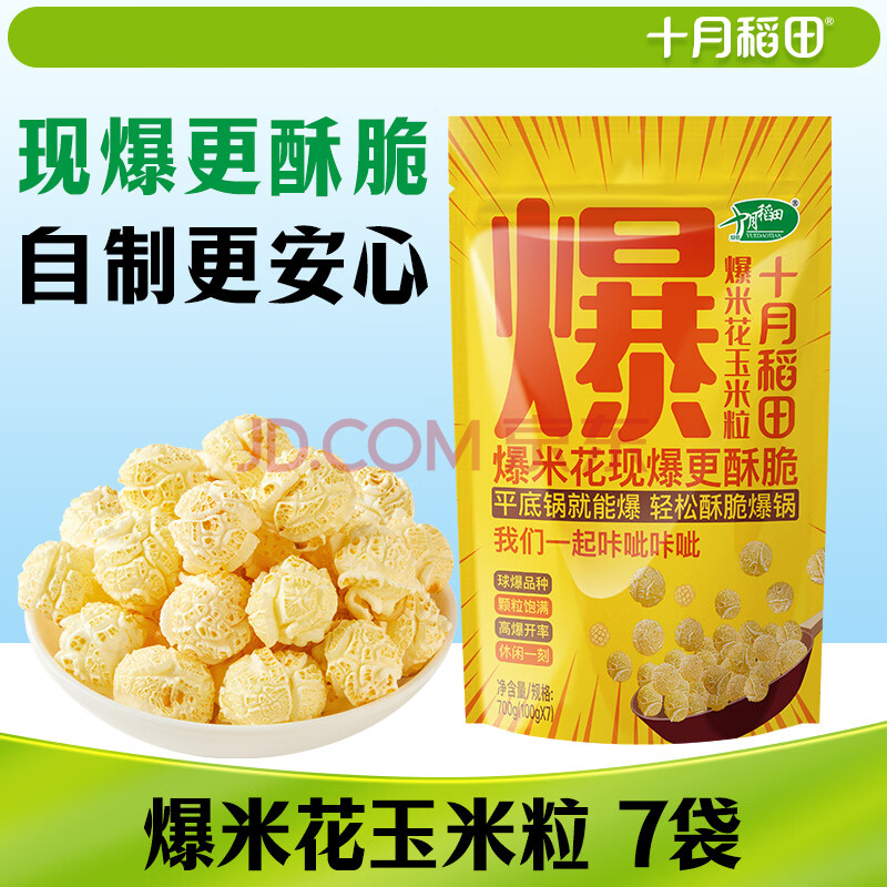十月稻田 球形爆米花专用玉米粒 内含7小袋 1.4斤 (爆裂玉米 爆米花原料)