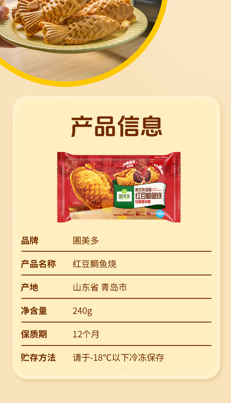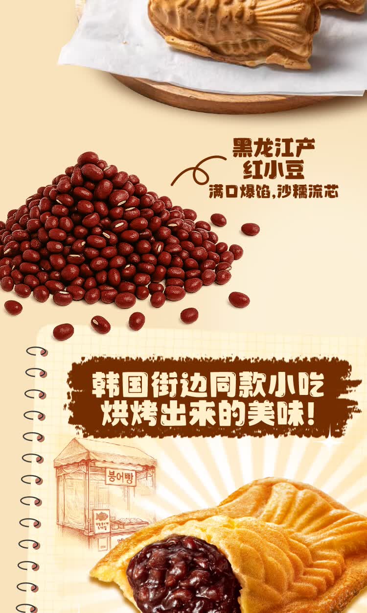圃美多红豆鲷鱼烧5个装 240g 韩式空气炸锅儿童小吃速食早餐半成品