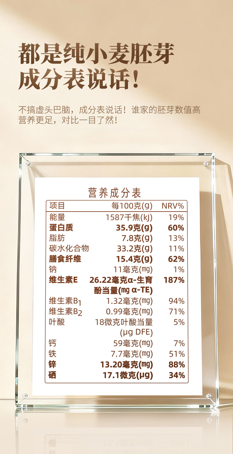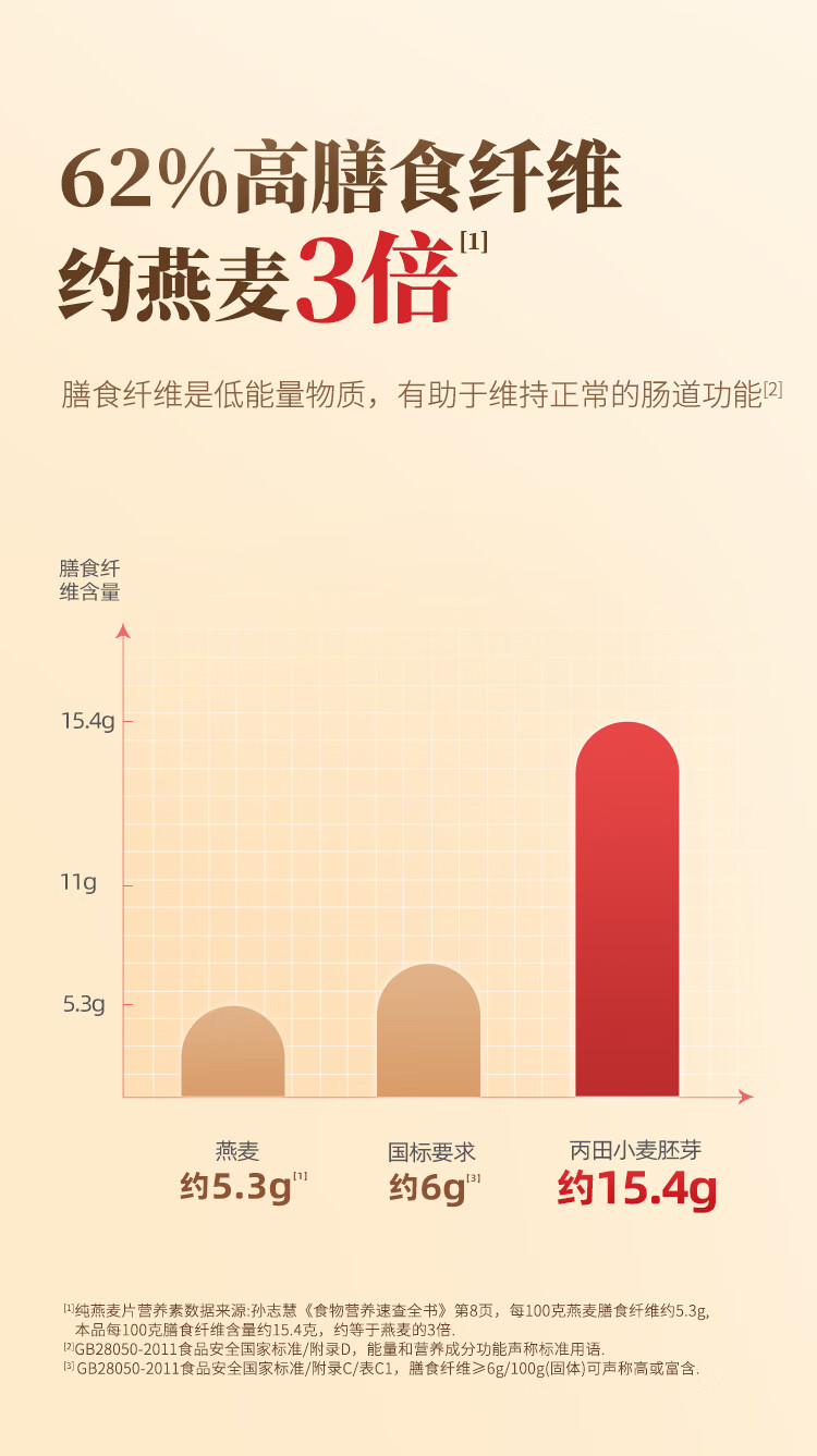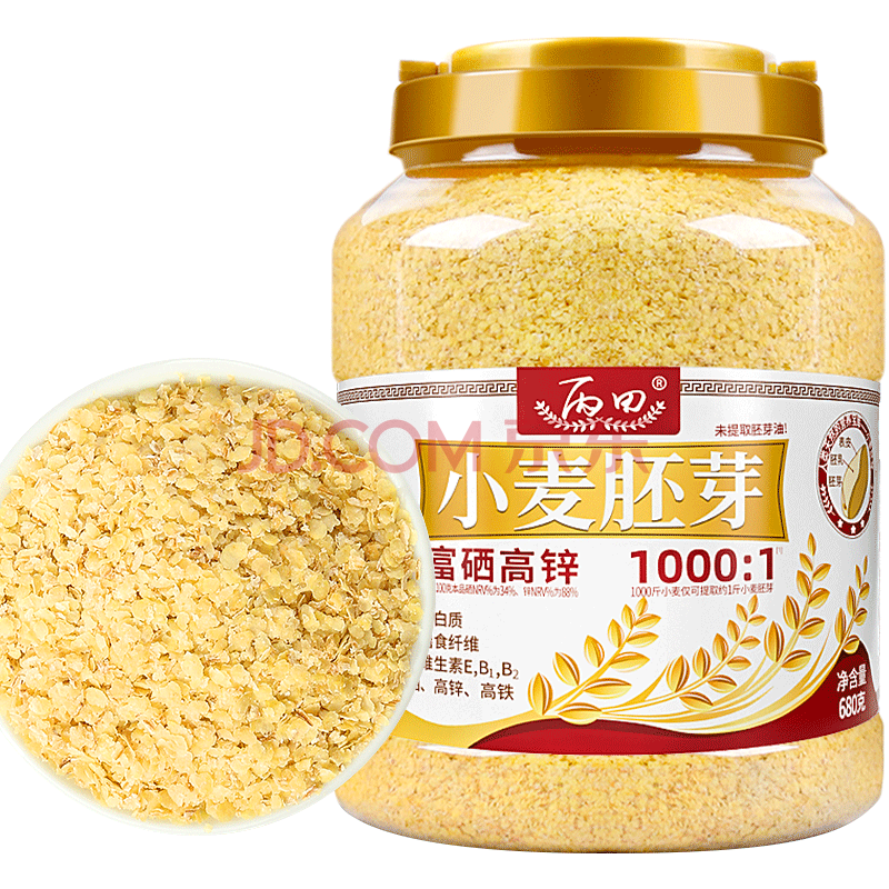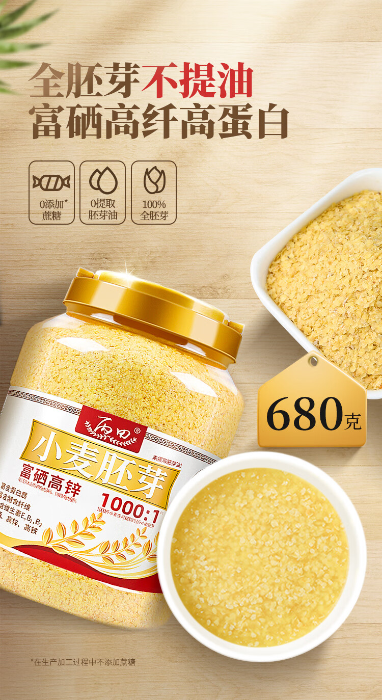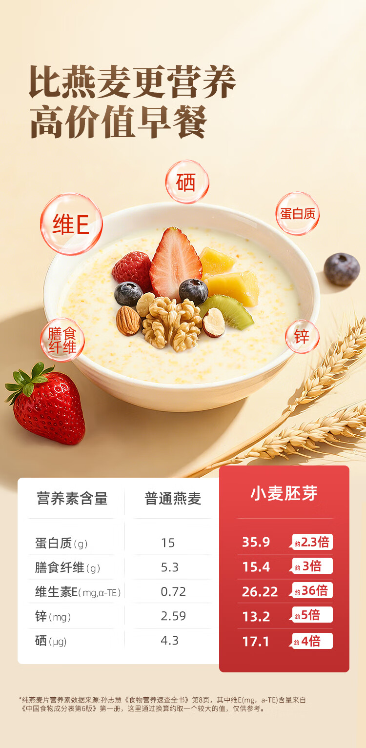 丙田 金黄小麦胚芽麦片 富硒高锌无加蔗糖原味燕麦片纯胚芽粉即食儿童