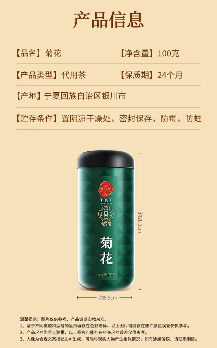 同仁堂品牌 北京同仁堂菊花茶100克 桐乡原产胎菊可搭枸