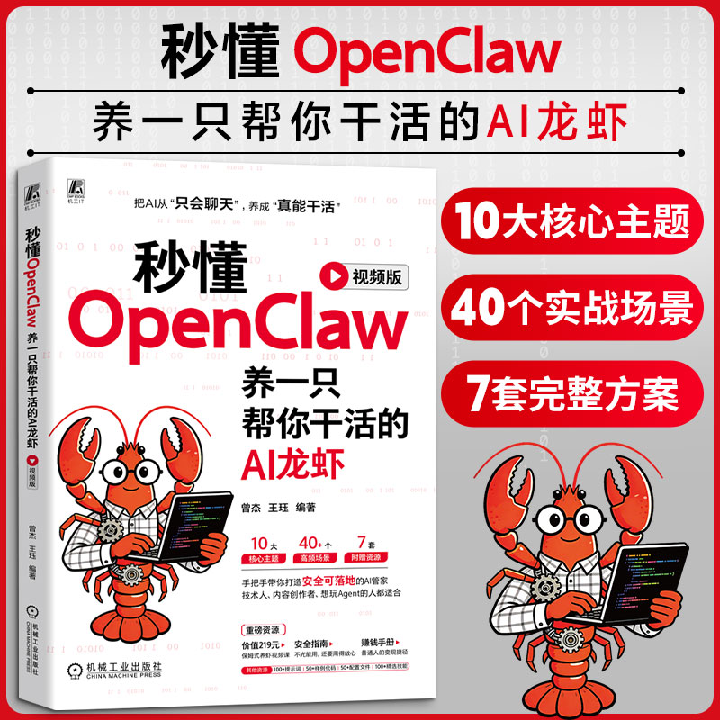 OpenClaw是一个面向智能体(Agent)构建与运行的开源框架,能够将大模型、记忆、技能、工具调用与多平台接入整合起来,帮助用户搭建可配置、可扩展、可持续运行的AI(人工智能)数字助手。本书共10章,围绕OpenClaw的核心概念和系统架构、安装配置、平台接入、任务执行、技能扩展、记忆管理、主动能力、安全治理、云端部署与实战应用等内容展开,力求从整体认知到具体操作、从基础入门到综合实践,快速建立读者对OpenClaw的系统理解,并帮助读者掌握构建、调试、优化和使用智能体的全流程操作方法。本书兼顾原理讲解与实践操作,通过多个典型场景提升读者的实际应用能力,适合对AI智能体、自动化助手和开源工具感兴趣的技术爱好者、开发者,以及希望借助智能体提升效率的读者学习使用。随书附赠提示词、样例代码、配置文件、精选技能、安全指南、赚钱手册(获取方式见封底),以及一套价值219元的保姆式养虾精品视频课,助力读者高效学习。