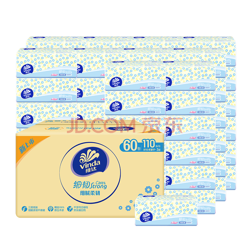 维达(Vinda)抽纸 细韧3层110抽*60包 细腻柔韧 餐巾纸卫生纸 整箱