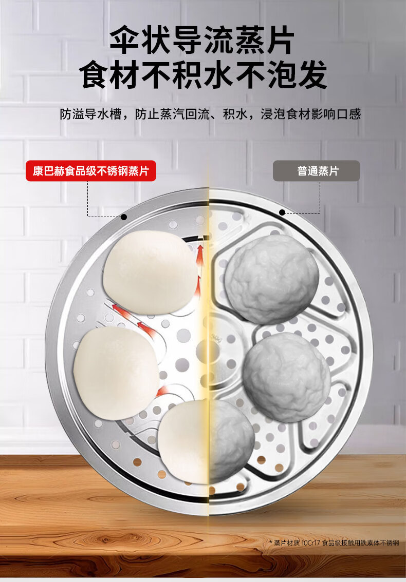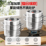 康巴赫304不锈钢三层蒸锅蒸笼复底大汤蒸锅多功能锅具32cm燃气灶通用