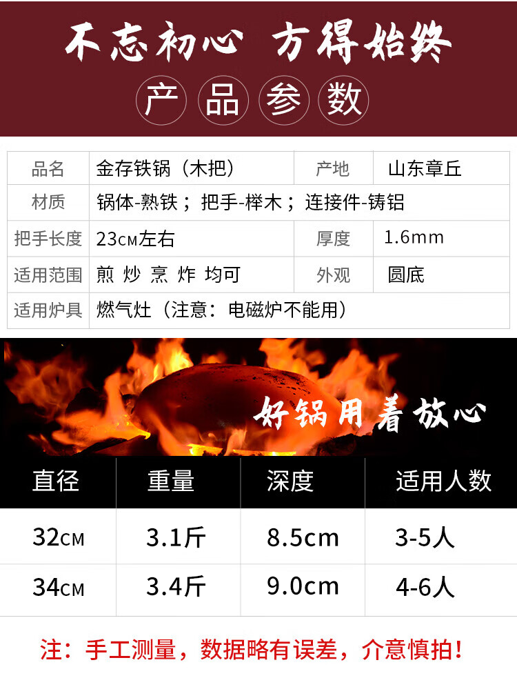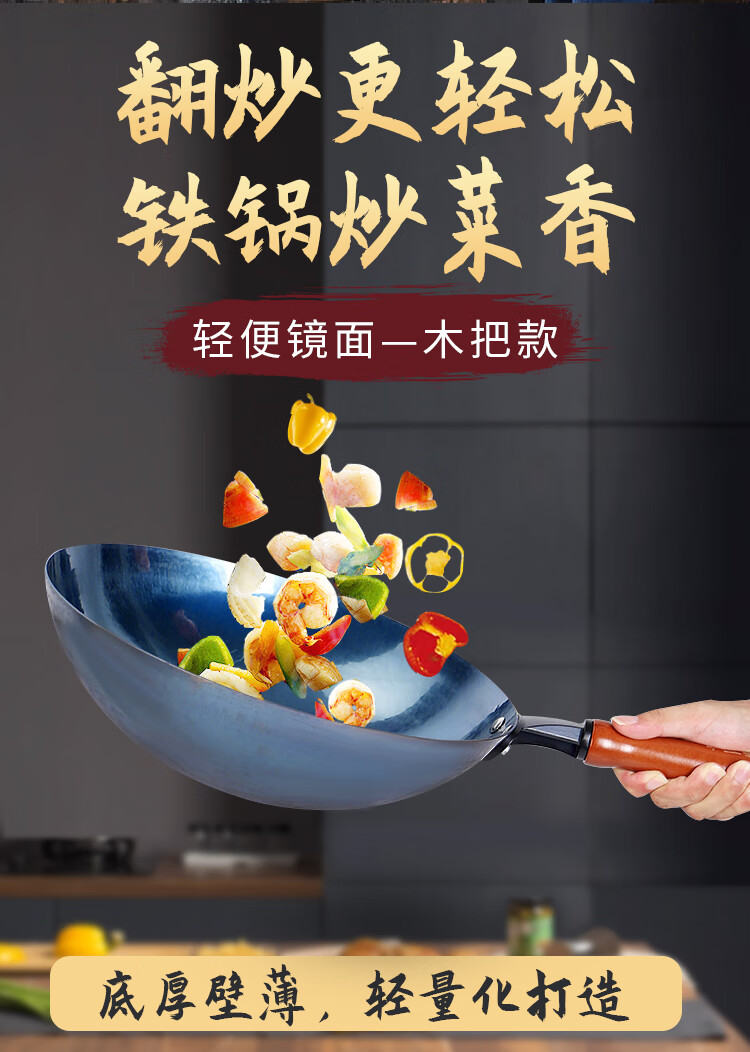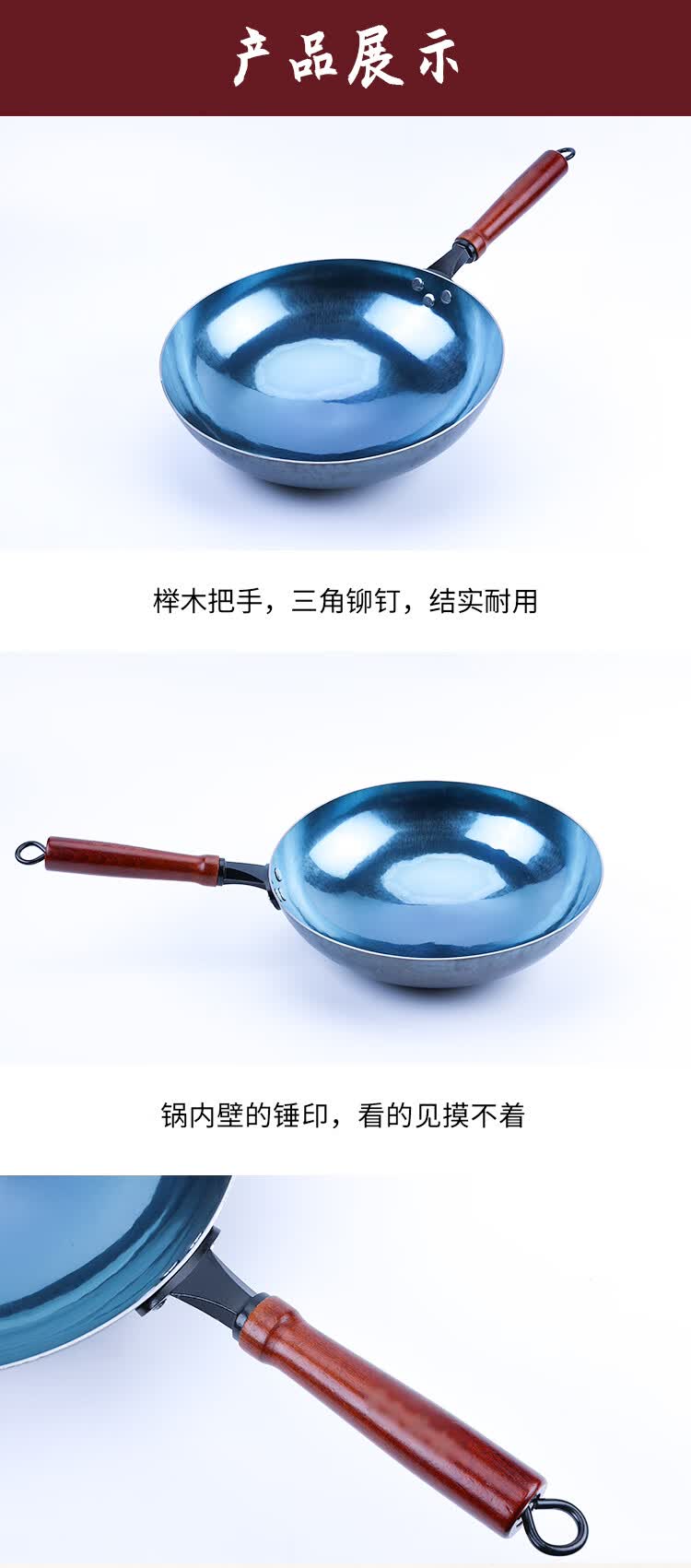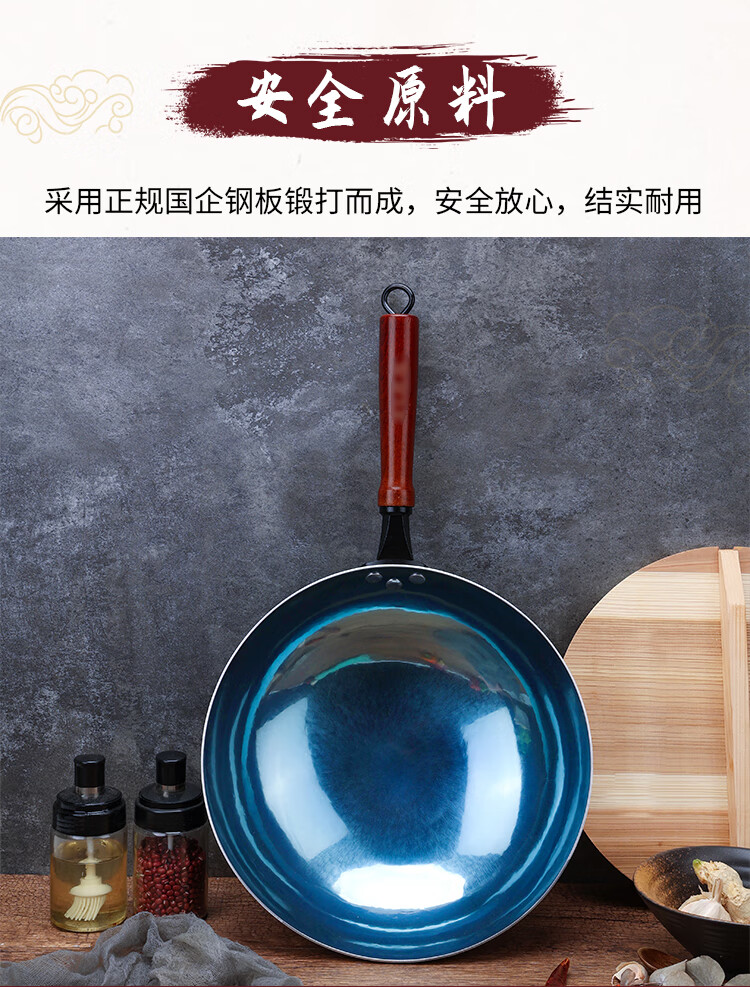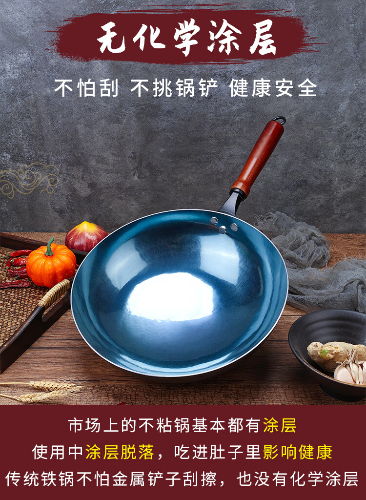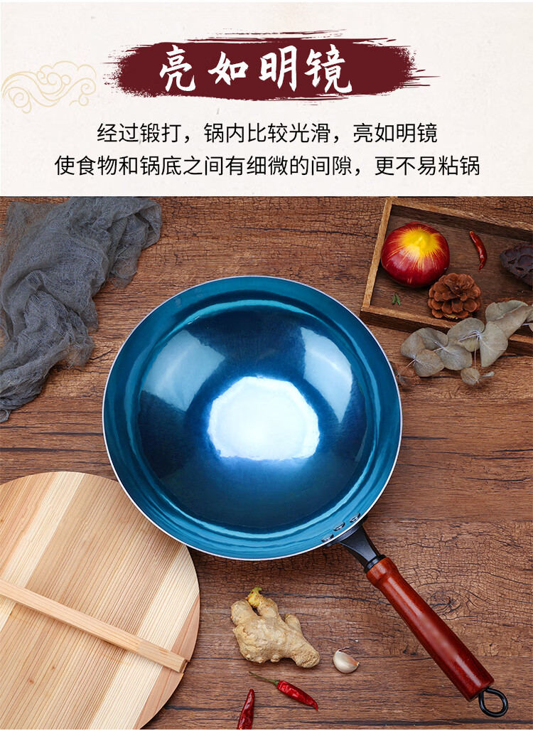 金存章丘炒锅铁锅炒菜锅家用无涂层圆底精铁锅正宗燃气灶已开锅34cm