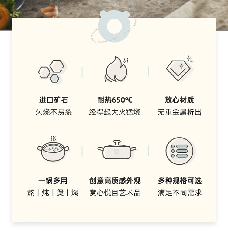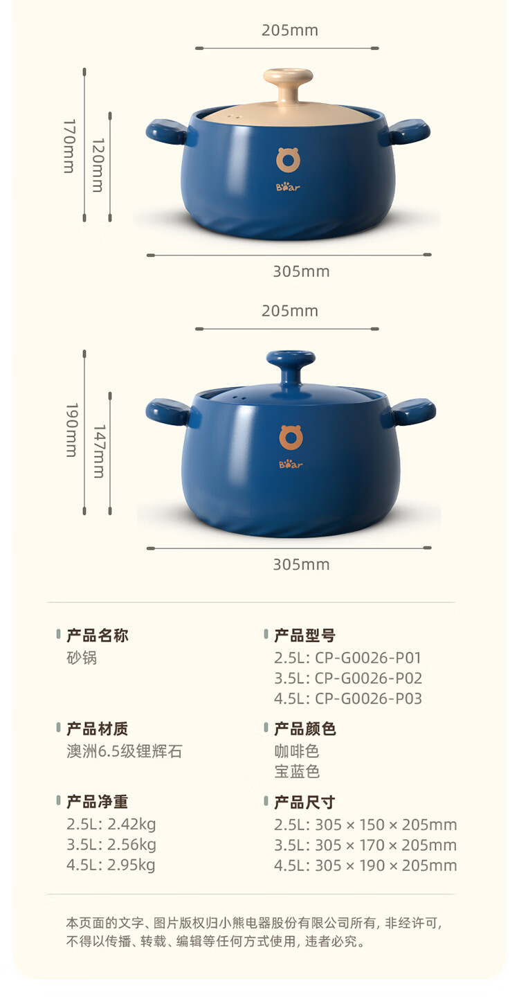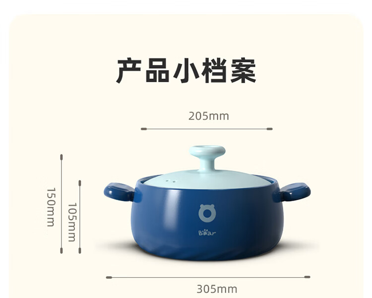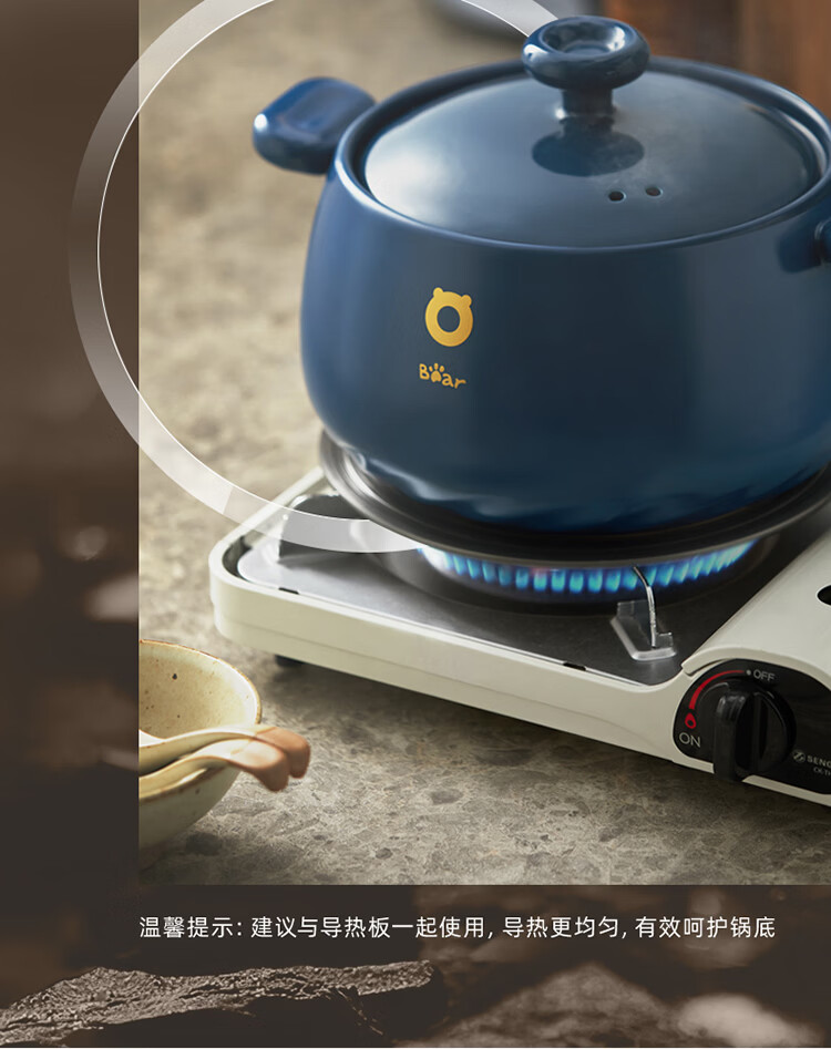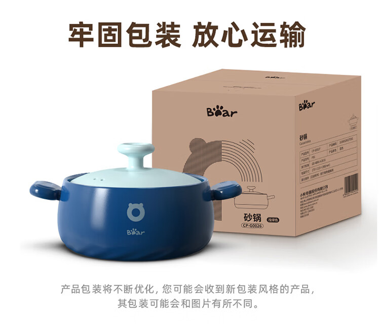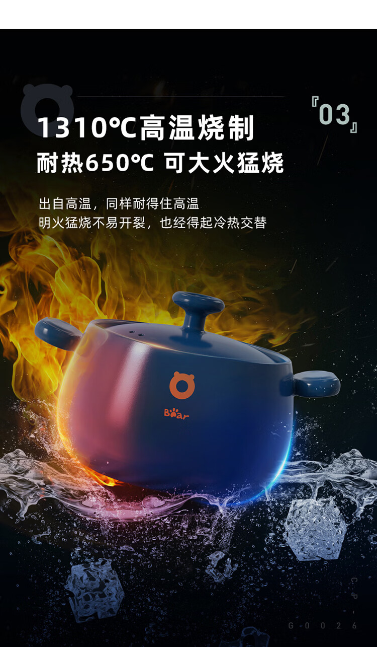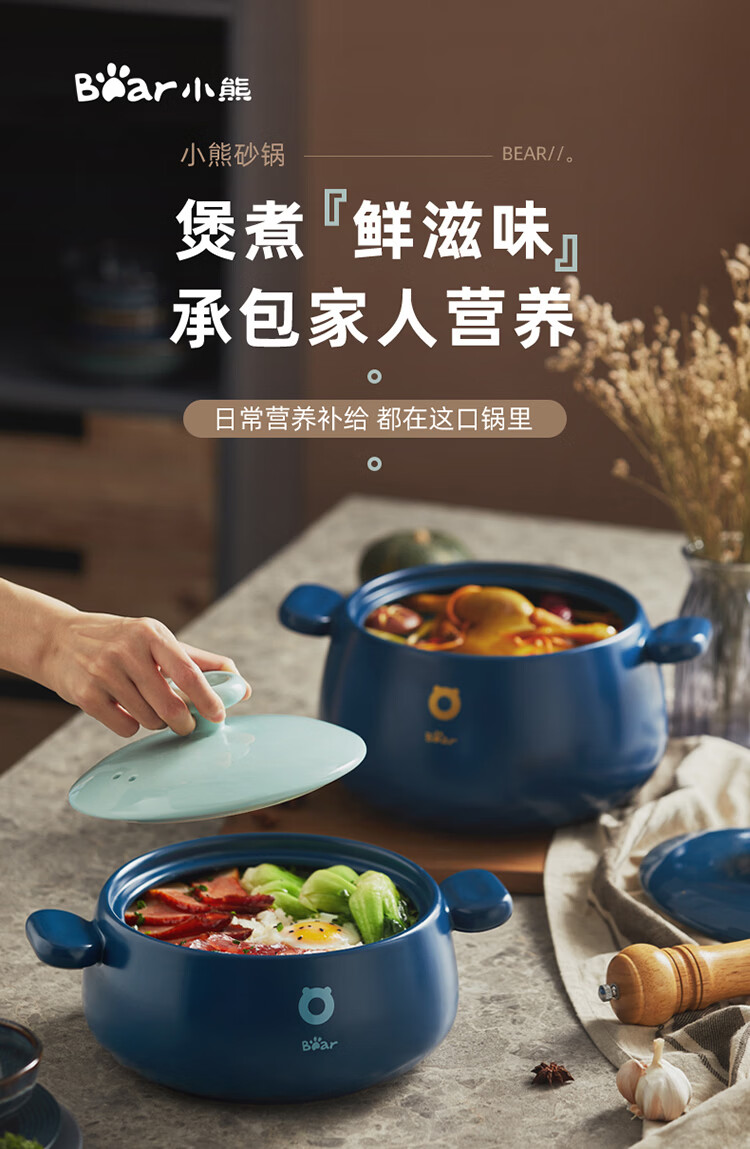小熊(Bear)砂锅 煲汤锅耐高温不开裂 3.5L通用沙锅 宽口炖锅陶瓷锅G0026-P02