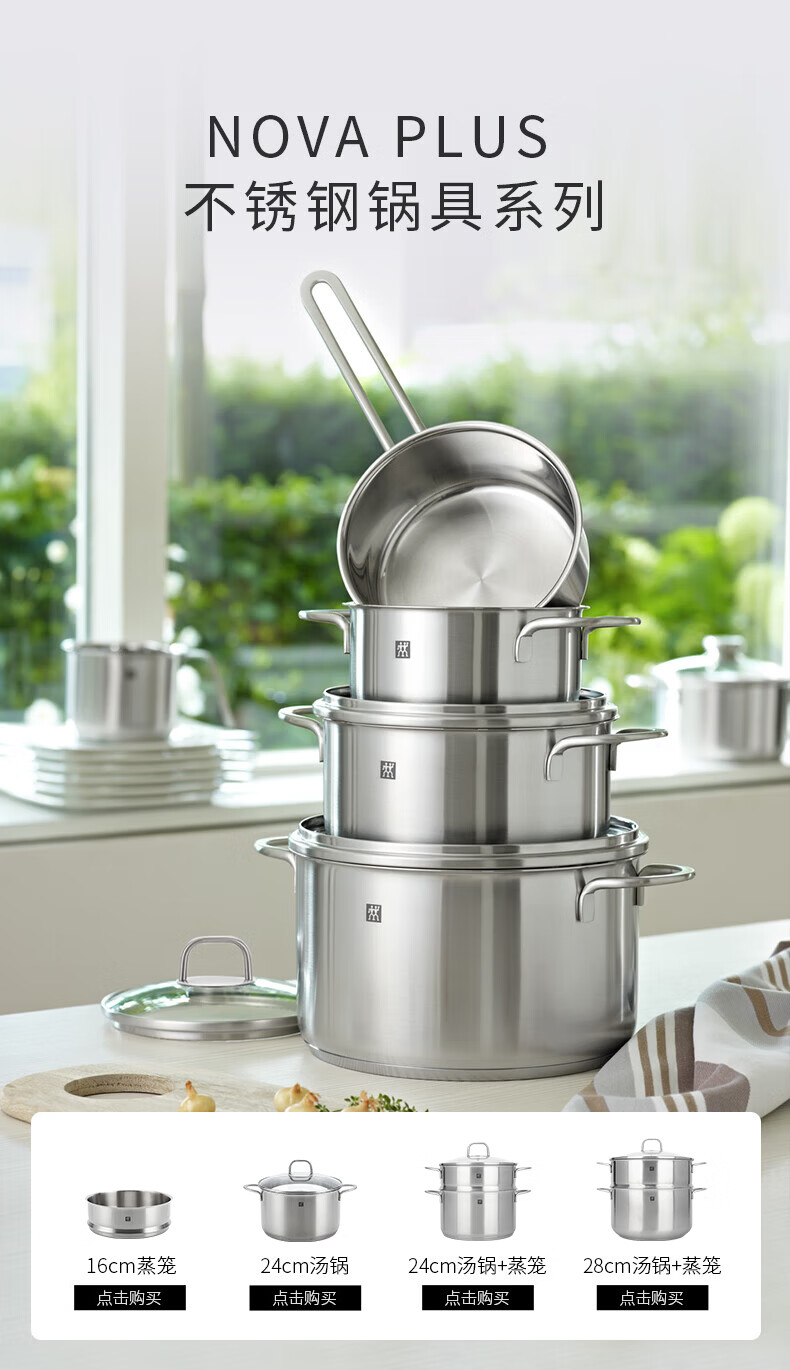 双立人(ZWILLING)奶锅汤锅不锈钢无涂层宝宝辅食锅泡面锅一人食煮锅Nova plus16cm