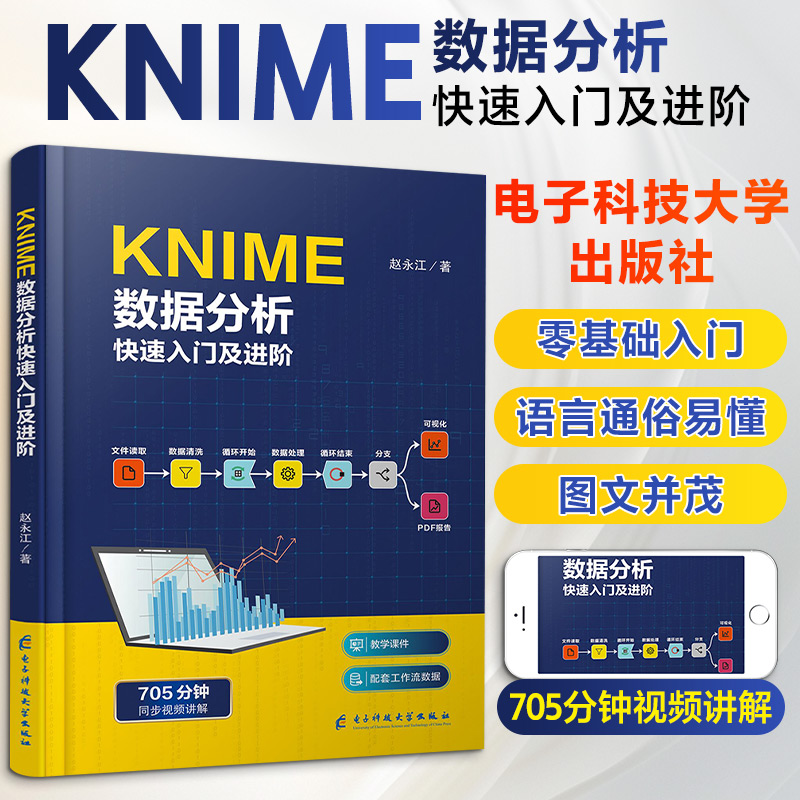 《KNIME数据分析快速入门及进阶》是一本介绍开源数据科学平台KNIME的操作指导类图书。KNIME(Konstanz Information Miner)是一款开源的数据分析和集成平台,用于可视化数据处理、机器学习和工作流自动化。本书基于作者十多年的实践经验,以简单易懂的案例和通俗易懂的方式,图文并茂地详细阐述了KNIME(最新版本)的基本概念、主要功能和操作要点。《KNIME数据分析快速入门及进阶》由浅入深地逐步指导读者如何在实际项目中使用KNIME进行数据分析、数据可视化、一键生成报告、自动化处理数据等操作。没有任何编程基础的读者在学习了本书后也能够快速入门数据分析,并高效地利用KNIME直观的图形化界面优化工作流程,提升工作效率。