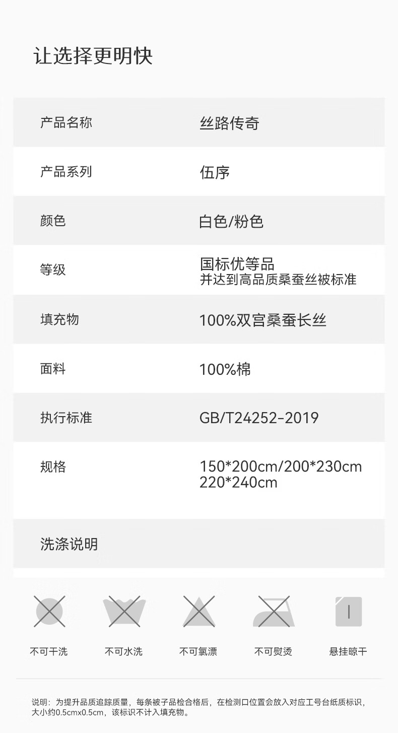 蚕花娘娘【丝路传奇】100%桑蚕丝被子芯秋冬暖被 丝重5斤200*230cm【白】