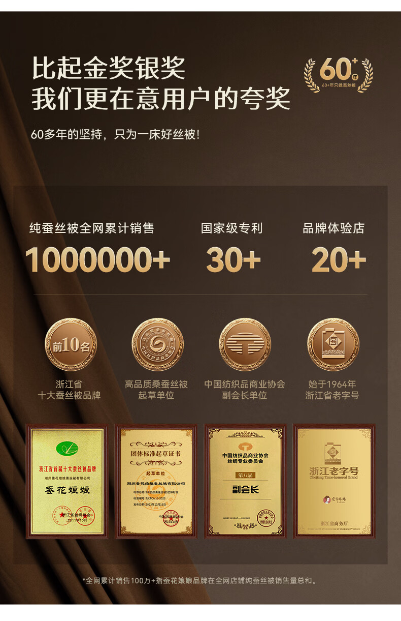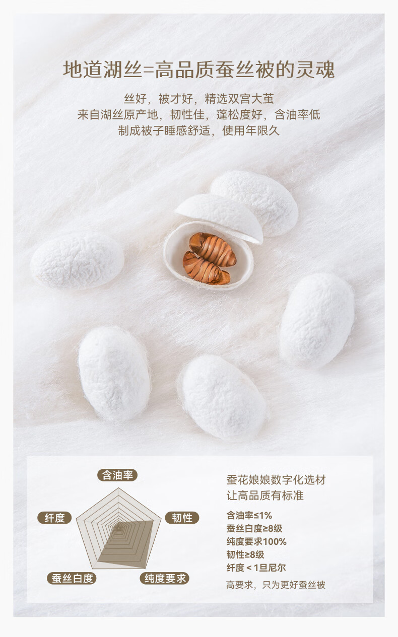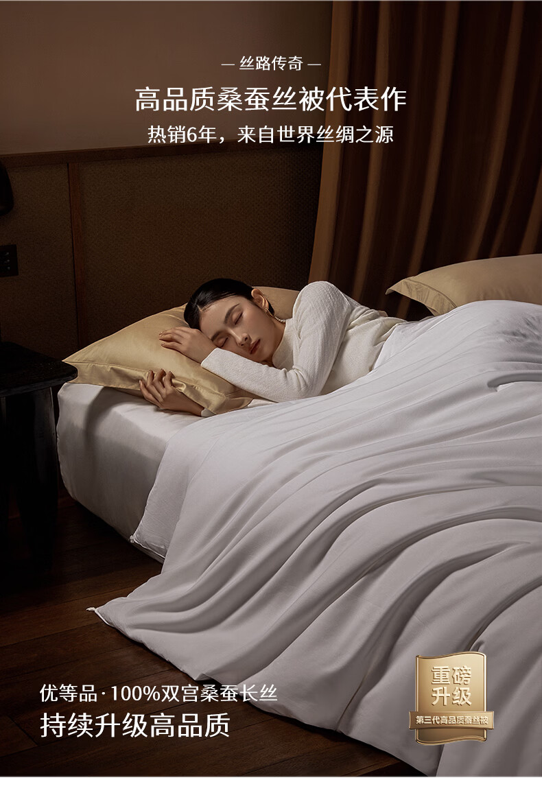 蚕花娘娘【丝路传奇】100%桑蚕丝被子芯秋冬暖被 丝重5斤20