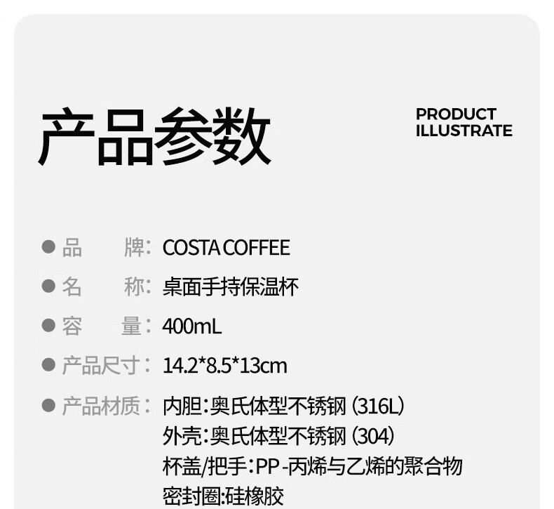 COSTA桌面手持保温保冷杯男女士高颜值不锈钢咖啡水杯子礼物节日送礼