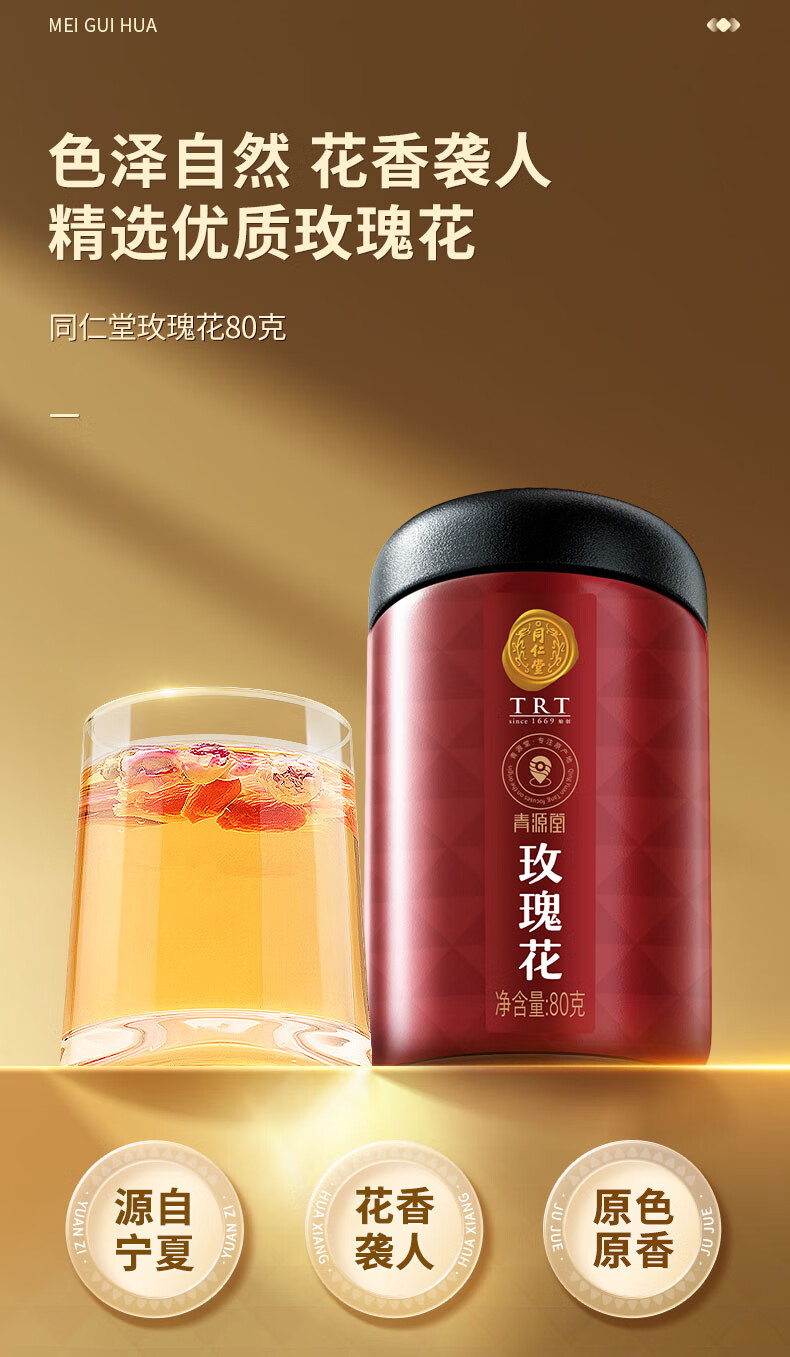 同仁堂品牌 北京同仁堂玫瑰花80g玫瑰花茶重瓣大朵泡水送女神长辈送礼品
