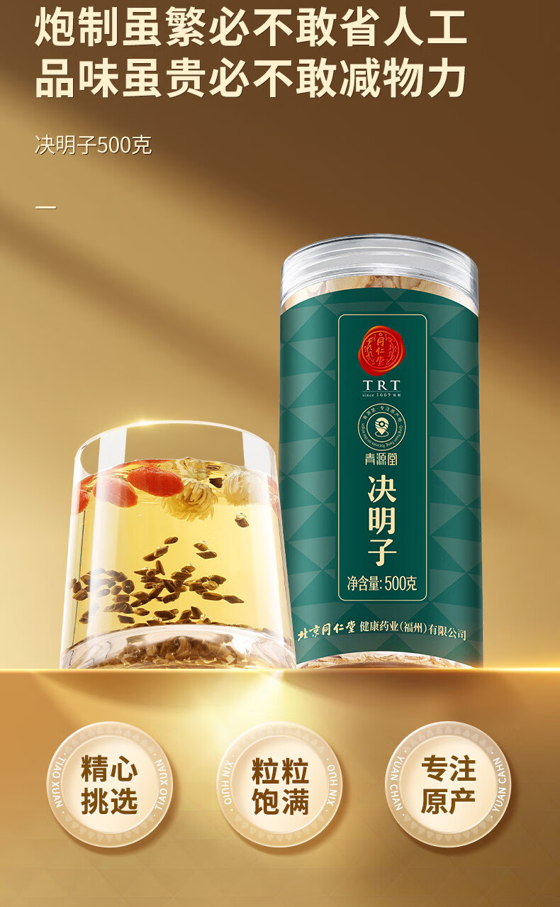 同仁堂品牌 北京同仁堂决明子茶500克花草茶炒制熟决明子养生茶