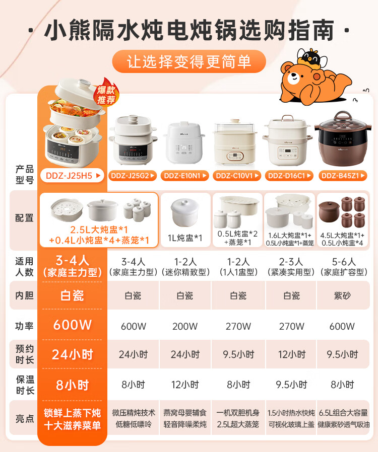 小熊(Bear)电炖锅 电炖盅 炖汤盅电炖锅 煲汤锅炖汤锅 隔水炖 婴儿煮粥锅熬粥燕窝炖盅小型1-2人DDZ-C10V1 1L